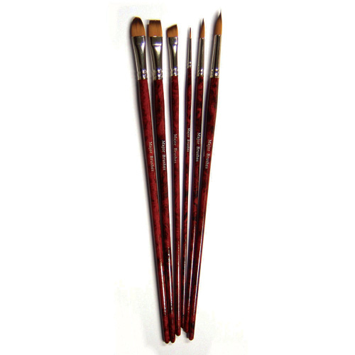 Superior synthetic brushes ideal for use with acrylic paints. Brushes have durable and flexible filaments with excellent elasticity, and long handles for improved balance. Filaments have fine points and edges for detailed artwork. Available as a set of 4 or 6 brushes in a reusable plastic wallet, or as a set of 10 brushes in a zipped folding case.
